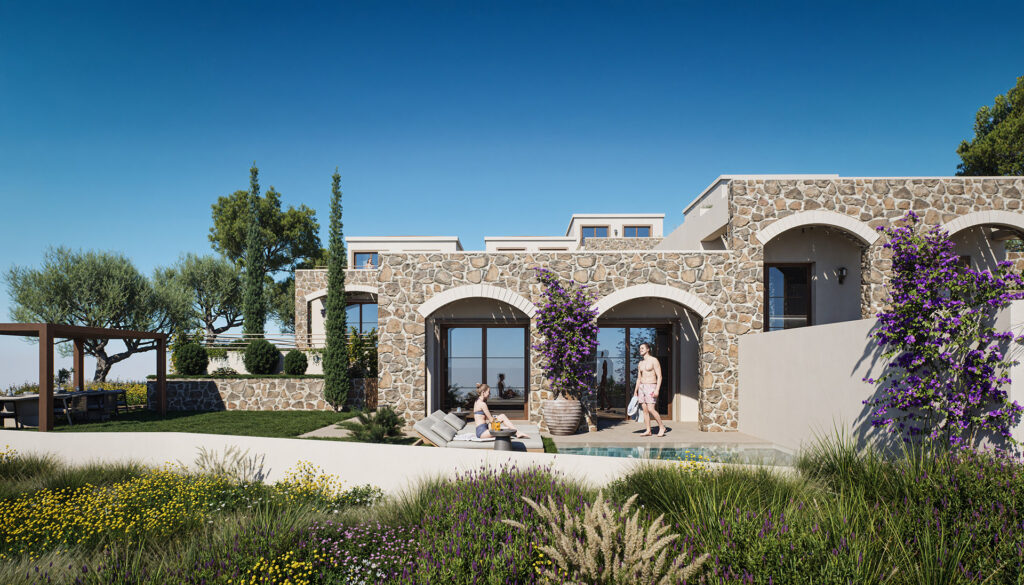 Kalyos Villas is thoughtfully placed within this unique landscape, drawing inspiration from its surroundings while offering contemporary comfort. Here, architecture, nature and village life come together to create homes that feel grounded, peaceful and deeply connected to place.